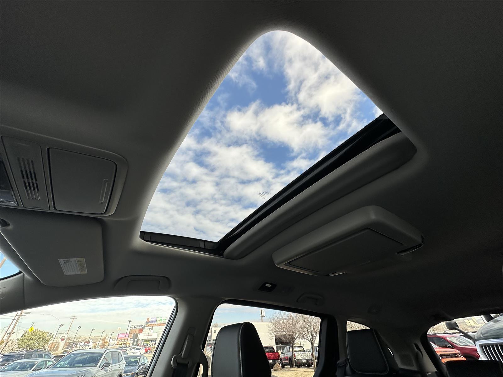 - First-row moonroof First-row sliding and tilting glass moonroof with express open/close activation sunshade