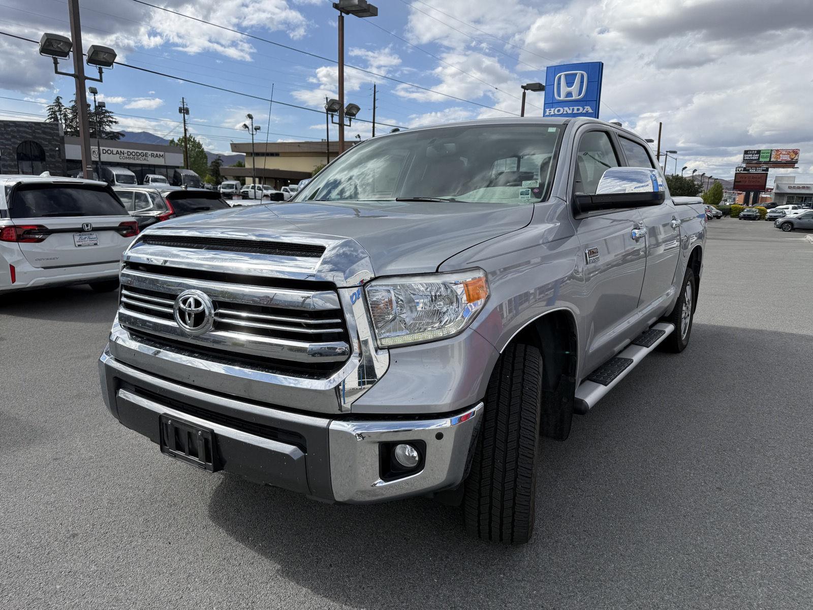 This 2016 Toyota Tundra Truck Platinum, has a Silver Sky Metallic exterior and an Black interior color. 72,181 miles. Stock Number 820421. Contact our Internet Sales Manager at (775)337-9706. No Accidents! One Owner! OTHER NOTABLE FEATURES AND OPTIONS YOU SHOULD KNOW ABOUT: 1794 Grade Package