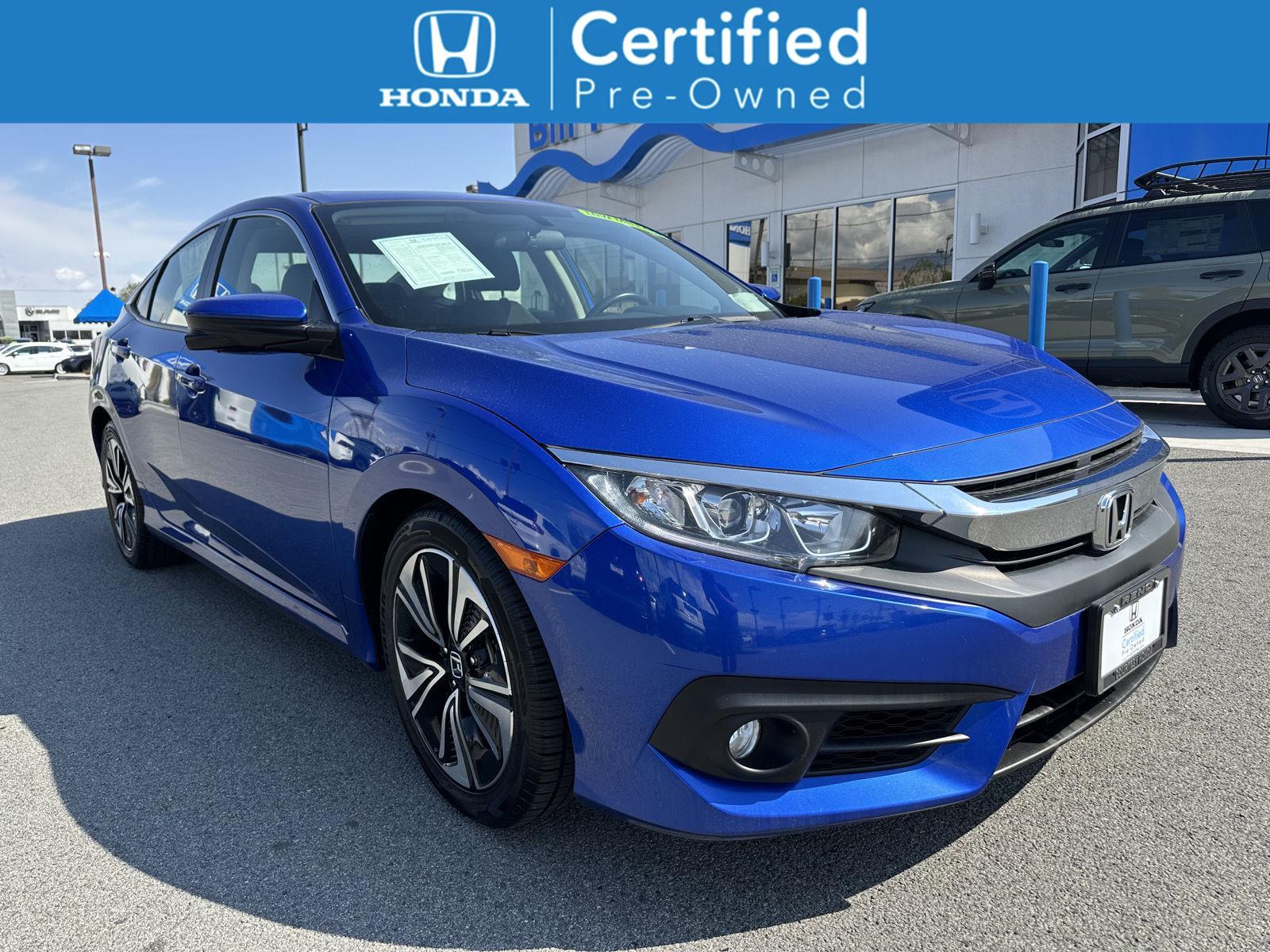 This Certified 2018 Honda Civic Sedan EX-T, has a Aegean Blue Metallic exterior and an Black interior color. 34,843 miles. Stock Number 818261. You can connect with us by calling (775) 789-7999. Important Package and Feature Information