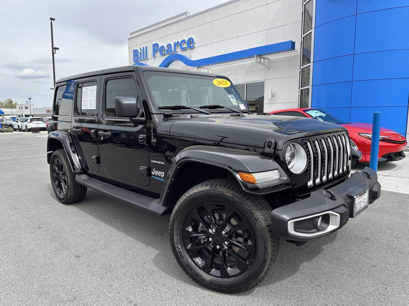 This 2021 Jeep Wrangler 4xe Unlimited Sahara, has a Black Clearcoat exterior and an Black interior color. 38,829 miles. Stock Number 420091. Contact our Internet Sales Manager at (775)337-9706. No Accidents! One Owner! OTHER NOTABLE FEATURES AND OPTIONS YOU SHOULD KNOW ABOUT: Cold Weather Group ($995 value)