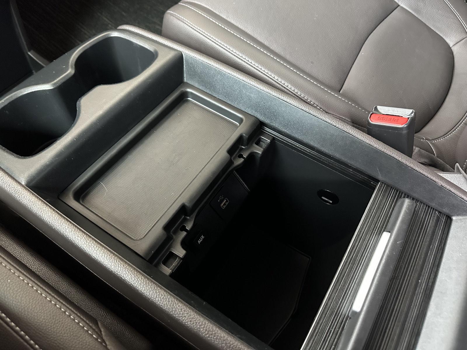- Floor console storage Covered floor console storage