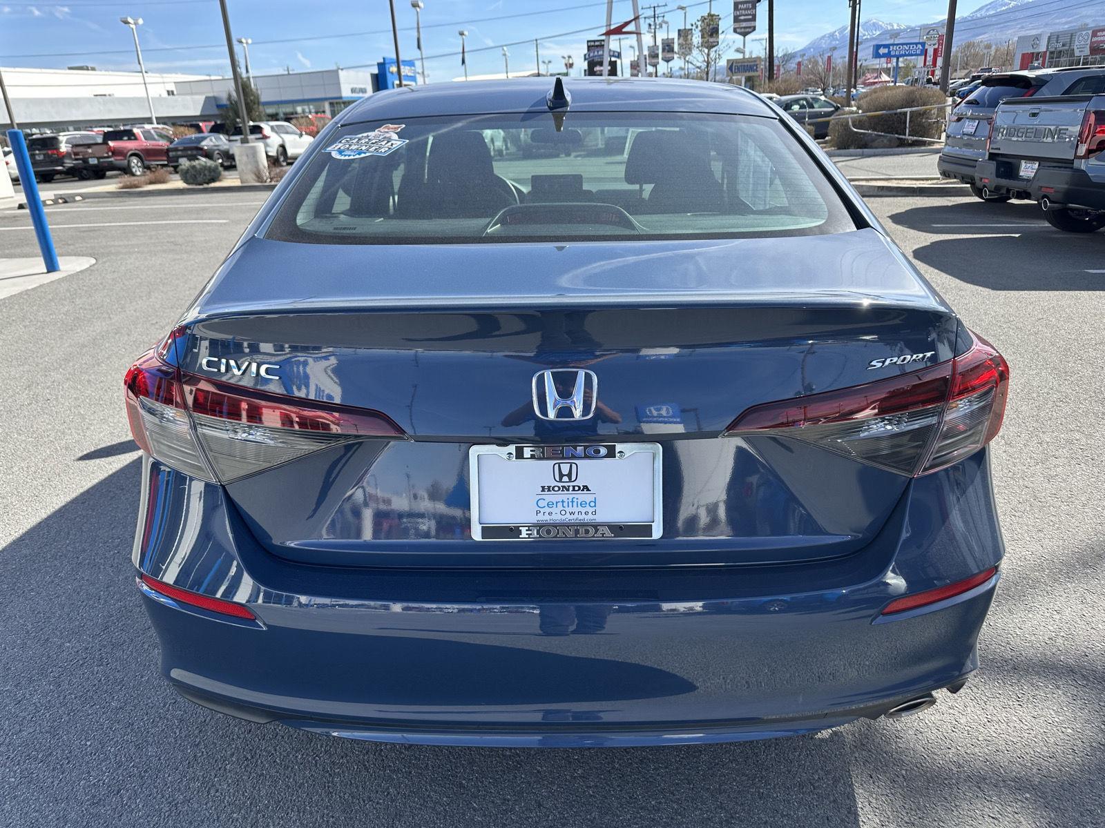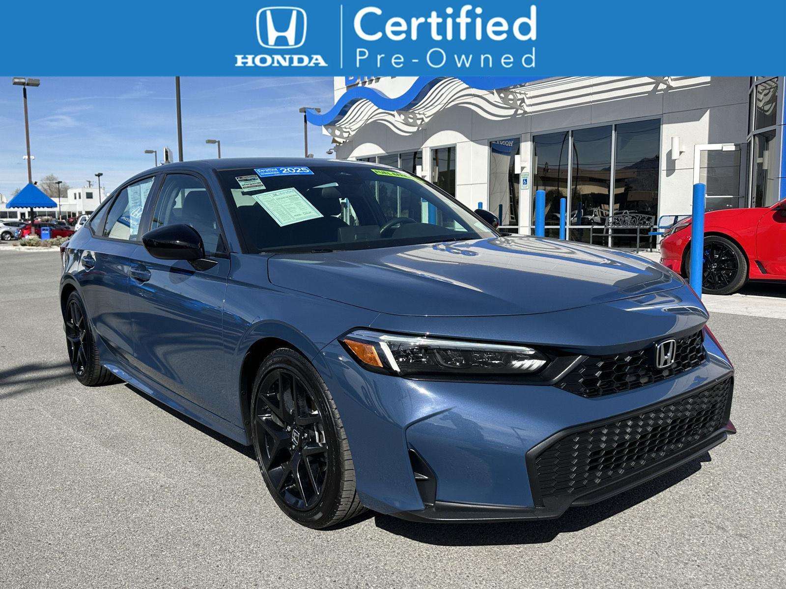 This Certified 2025 Honda Civic Sedan Sport, has a Blue Lagoon Pearl exterior and an Black interior color. 5,869 miles. Stock Number 418532. You can connect with us by calling (775) 789-7999. No Accidents! One Owner! Important Package and Feature Information Safety and Security